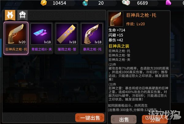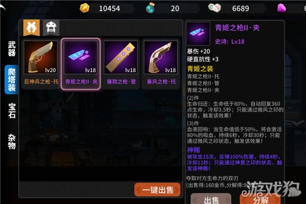 2.爬塔装备 背包中武器下面哪一个包就是爬塔装备了,普通关卡还是不要用了除非你刷到顶级的装备了,现在最高品质是红色。