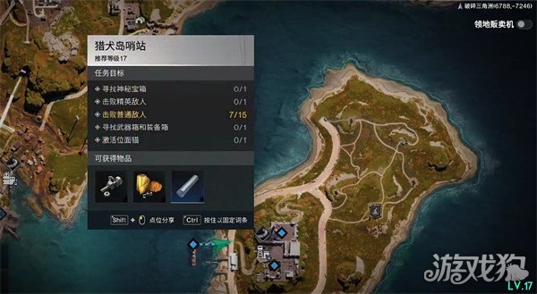 猎犬岛神秘的宝藏,主要分布于猎犬岛哨塔附近的宝箱,玩家在前往猎犬岛后,需要打开地图,切换到右下角的猎犬岛哨塔坐标,在抵达后,一路往东面行动,就可以抵达哨塔的路口了,在哨塔路口内,玩家需要击败一名精英敌人。