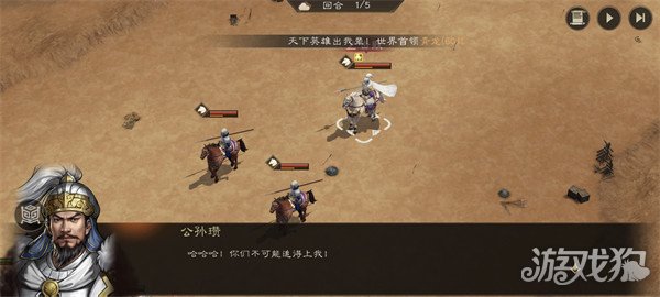 本关难点:公孙瓒跑的又快又远,需要利用二动和冲刺技能的武将迅速包围击破