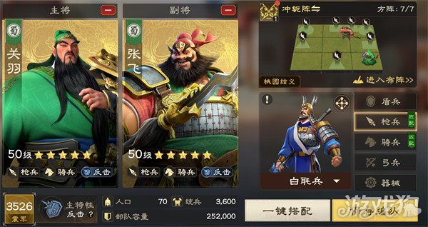 一般来说,建议首选这支队伍,关羽、张飞都拥有较高的数值优势,能打、能抗,而且能激活羁绊提升20%反击伤害。关羽被动可使攻击时获得怒气,也有穿透率、反击率提升效果,能通过反击打伤害,也有较高的技能输出;