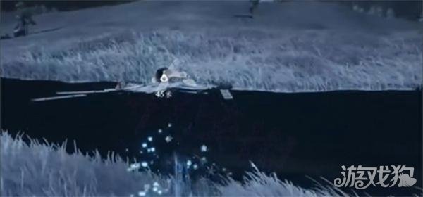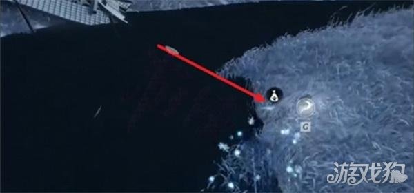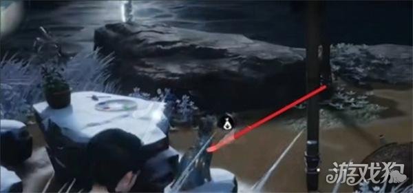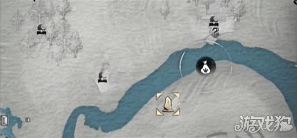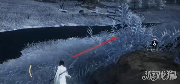 2、到达后,转动视角,顺着河流往箭头方向走。