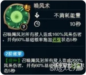 召唤飓风对所有敌人造成160%风系伤害并有60%基础概率施加迟缓状态5秒