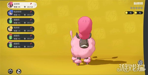 先看看粉咩咩的快充技能,这个特性能让粉咩咩离场获得能量10点。粉咩咩有很多精灵技能,下面将一一介绍:落星是个物攻技能,能对敌方精灵造成40点物理伤害。猛烈撞击也是物攻,能造成60点物理伤害,是个比较直接的攻击手段。球状闪电同样是物攻,60点物理伤害,带着电属性的攻击效果。粉咩咩还有个防御技能,能减伤80%。