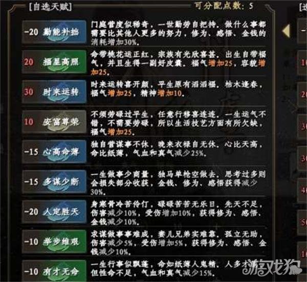 4、此外,还有一些其他类型的天赋,比如增加悟性、精神等,你可以根据自己的需求和玩法来选择合适的天赋。
