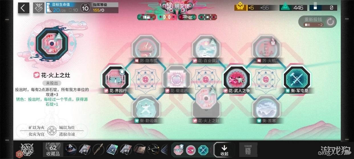 第二层:开启“指点迷津”功能,可使用存下的招募券提升阵容质量。若队伍质量较高可进洞进一步发育;若资源不足,可保存烛火与材料,等待后续节点使用。