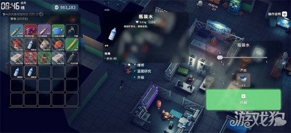 大家要注意,想要分解东西必须工作台升级出分解的功能来才行。