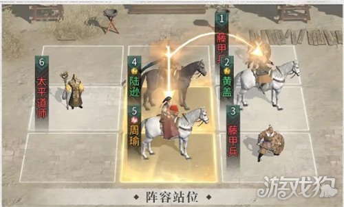 为了最大程度发挥爆发能力,站位上需要让陆逊踩到周瑜和黄盖的追击格,以多次触发其天赋【不意流火】。