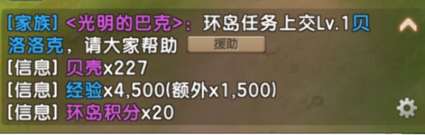 完成每一项环岛任务将获得经验奖励、贝壳及环岛积分的奖励。