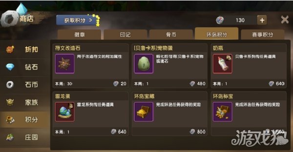 ②环任务中的环岛积分可以到游戏主界面中的[商店]进行奖励兑换。