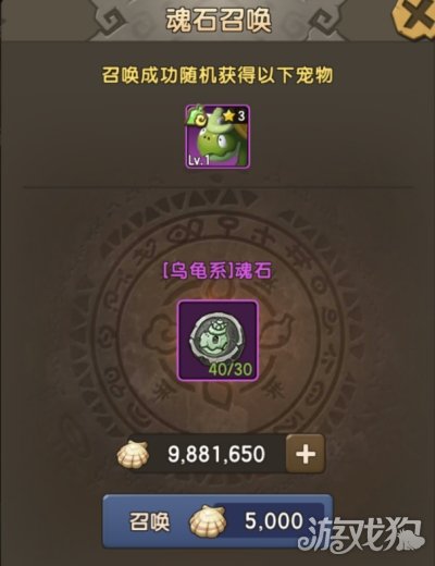 当玩家集齐某个系别的宠物魂石达30个,即可召唤3星宠物,召唤的宠物将会在召唤列表中随机召唤,每次召唤需要消耗一定的贝壳数。