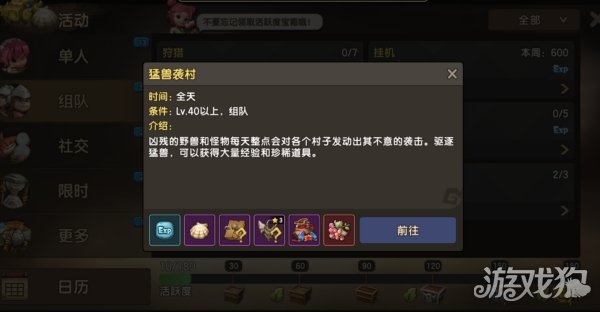 召唤师角色等级达到40级后,即可开启猛兽袭村的玩法。猛兽袭村的难度相对较高,所以驯兽们需要组队前往。