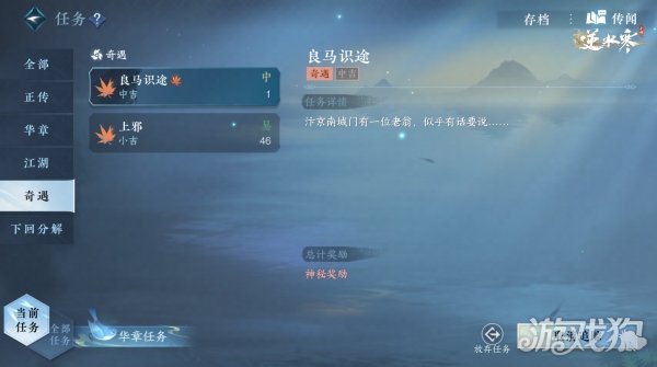 1、当熟识度满了(达到100)以后,继续在该场景中闲逛就可以触发奇遇“良马识途”。