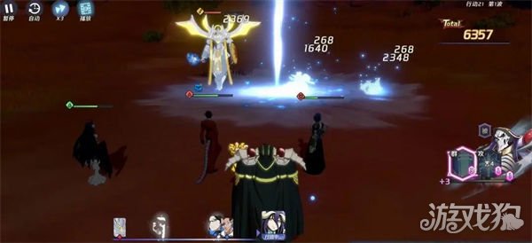 除了可以操纵的四位上阵角色外,随着每回合屏幕右侧能量条的增加,能量条积攒到一定程度后,我们即可释放骨王的主动咒文技能【龙雷】,对敌方单体造成大量伤害。