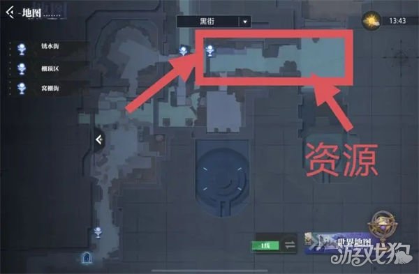莱茵城孤儿帮:黑街水锈街,资源在箭头指的方向。