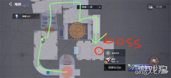 老样子,钟楼,一楼红色boss,绿色刷怪路线,4波怪左右,2楼是boss的传送点,还是传送到1楼boss和小怪刷新;