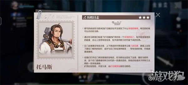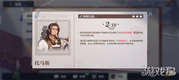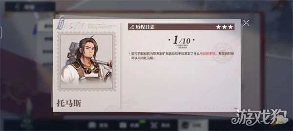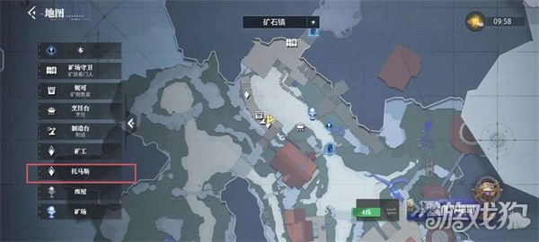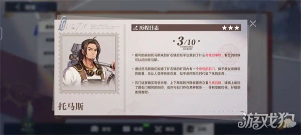 ①:打开地图,来到矿石镇找到托马斯接取历程日志。