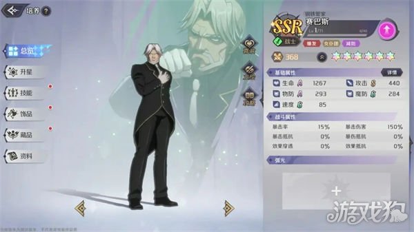 赛巴斯,SSR战士,可以通过叠加【正气】点数大幅度的提高自身的攻击力和无视防御能力,后期还可以消耗【正气】点数打出高额的爆发,可以作为队伍的核心物理输出存在。