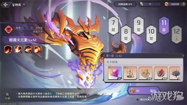 根源火元素主要通过火焰进行攻击,拥有高额的群体伤害,可附加【灼烧】状态,同时对我方攻击力最高的角色拥有超强的单体伤害,其核心控制技能为【烈焰囚笼】,被施加【烈焰囚笼】的角色无法行动,也无法被选中,相当于被放逐出战场以外。