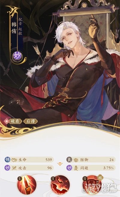 韩侑是一个高伤害输出的角色,可以快速击杀敌人。他的普攻技能彘突能够对单个目标造成高额伤害。而他的大招浩夜蝠天更是具备极高的伤害输出,能够对单个目标造成巨大伤害并击破护盾。此外,韩侑的被动技能将军令赋予他在攻击使目标下阵时进行追击的能力,进一步增加他的伤害输出。