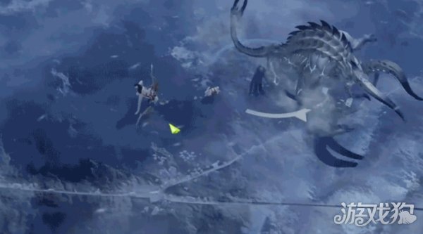 冰之雷齐奥洛斯斯纵身一跃,转身向后旋转360度后跳,然后向头前30度扇形区域吐息攻击,攻击附带冰冻效果。处理方法:在冰之雷齐奥洛斯后跳的时候快速离开头前位置。