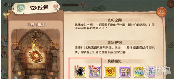 至于另外两种获取途径则会稍微困难一些,第一种需要去变幻空间中爬塔获得,它里面每层塔都有怪物需要你去击败,击败之后有一定几率掉落紫色和金色幻果。第二种就是参与先遣探索时获取,这个活动需要参与骑士团才能解锁,所以在此之前还得先创建/加入一个骑士团。