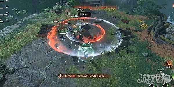 有一些技能攻击范围挺大,肉坦去前面输出,脆皮后排输出,注意脚下的火圈,不要站在里面输出,跳出外面来打输出。