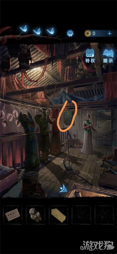 1.过剧情,点击获得地上的木偶头和长Q