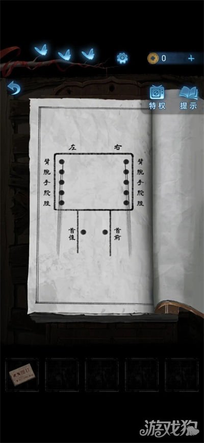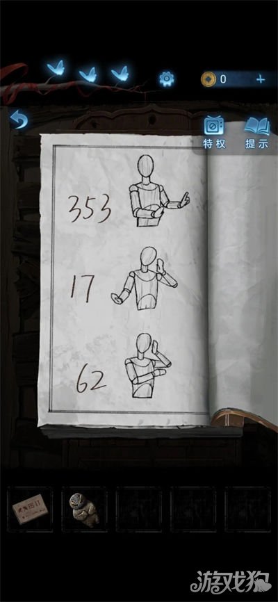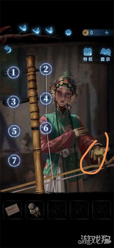 18.做小游戏,根据后面女人偶的姿势和书上的资料点击相应数字,木偶脑袋上的三个能量堆亮了后伸手,点击获得小牌子