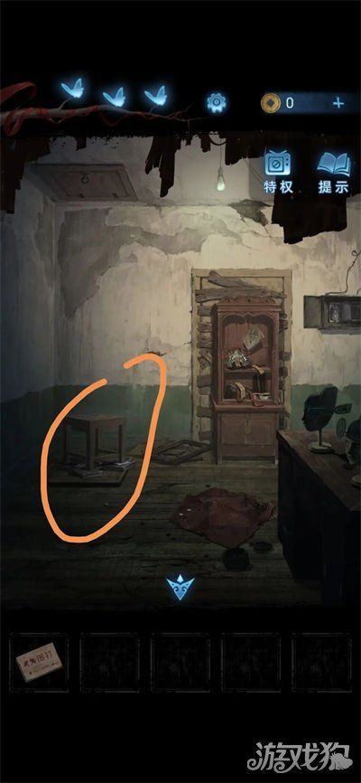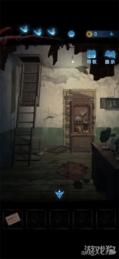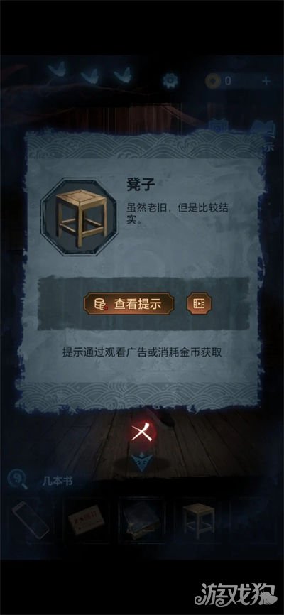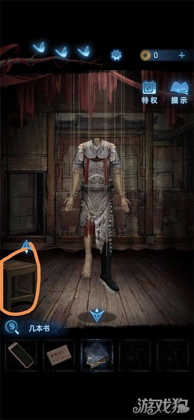 14.将凳子和书放在墙角,用手机垫凳子脚,点击上面的门拉开梯子