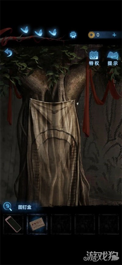 5.用图钉将树上的幕布挂起来,用手机把图钉砸进去,大树变门