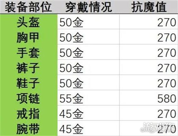 在套装选择上面就要选择上抗魔值最佳的来进行使用,选择上四件凑齐属性就可以了。