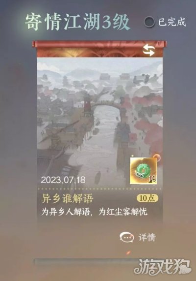 本文章《逆水寒手游异乡谁解语成就怎么达成 任务完成攻略》内容均用户转载。如涉及作品内容、版权和其它问题,请在30日内与本网联系,我们将在第一时间删除内容!本站文章版权归原作者所有,内容为作者个人观点。本站只提供参考并不构成任何投资及应用建议。本站拥有对此声明的最终解释权。