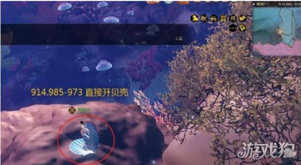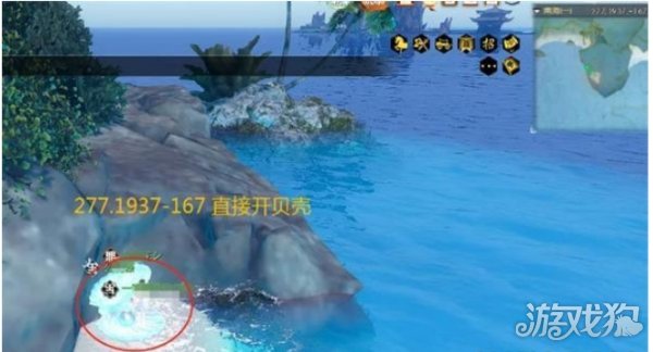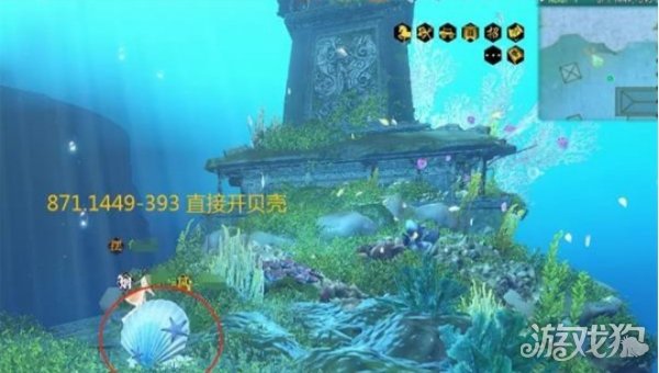 首先我们通过NPC传送到海底,然后传送到粉雾岛的魔鬼鱼搭乘点,往粉雾岛往左游,可以看到一个大岩石,贝壳的位置:(726,1568-233);