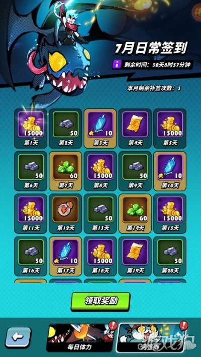 接下来是针对新人的七日签到活动,每天登陆都可以获取各种宝物和金币奖励。