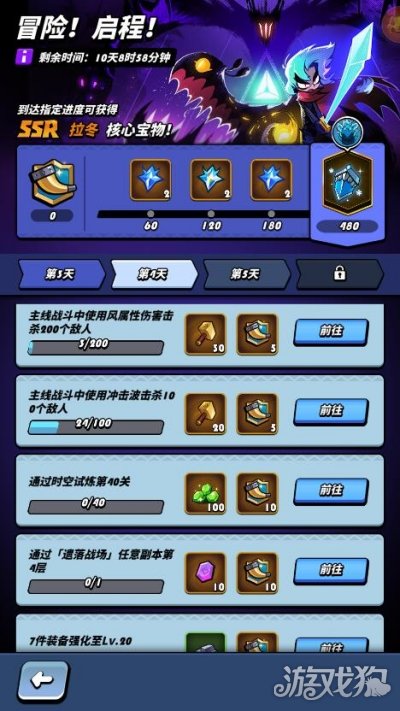 进入到游戏的冒险启程界面,每天完成相应的主线挑战或者副本挑战后可以领取龙晶。