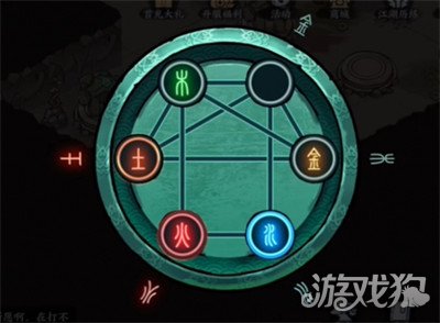 5、“木”移到“金”的位置,“火”移到“木”的位置,“水”移到“火”的位置。