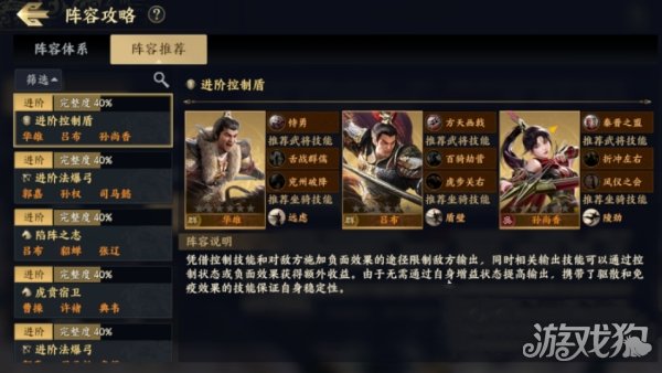 该阵容的输出主要依赖武将的高属性进行碾压式的伤害倾泻,至于技能层面,则更多的是偏向于控制和减益,利用这些技能可以很好的限制敌人们发挥作用,而且这一套具有根据敌人身上的控制和负面效果增加伤害的特性,这让本就输出不低的他们更加如虎添翼,当然,为了确保后续的输出能够顺利打出,所以玩这一套阵容的话,建议最好给阵中武将配上解控和免疫debuff的技能,这样也可以保障输出环境的稳定。