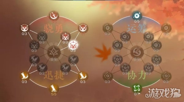 1、单人选择左边骁勇/迅捷加点。组队队伍中有一个人选择右边协力/运筹加点。