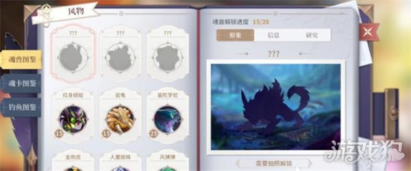 风土人情中的图鉴收集的是大家所遇到的新魂兽的影像,每遇到一个新的魂兽就可以点亮一个图鉴。那些还未被点亮的魂兽,大家也可以通过指定的地图去寻找。