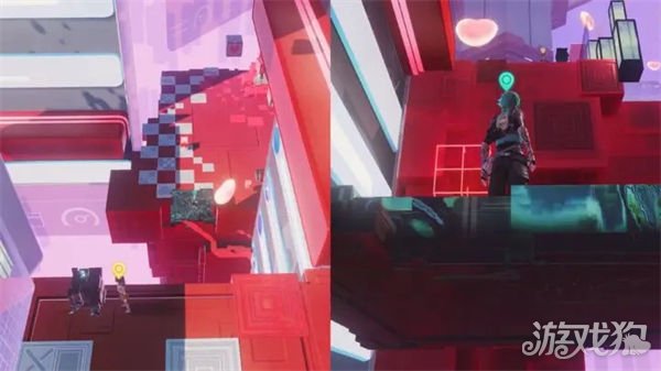 另一个地图就是人物的内心世界,在这片世界中都是各种方块元素组合的,玩家需要通过各种道具来瞬移到各个平台,比如说推动大型方块去开启按钮,又或者是使用方块来阻挡敌方的炮火,解密关卡挺有趣的。