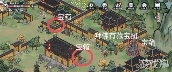2、在主殿的右后方我们可以看到一个佛像,我们直接拜佛后就能获得这个藏宝图。