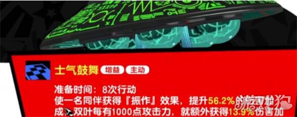 3技能士气鼓舞,准备CD8,给单个队友提供56.2%的伤害加成,并且佐仓每有1000点攻击,就能额外提供13.9%的伤害。属性提升技则是提升所有怪盗15%各自对应的属性。