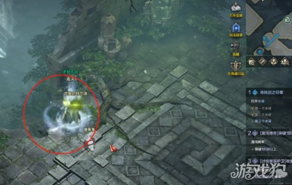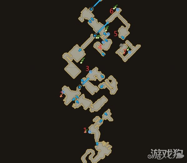 1、莫拉伊遗迹里有很多的隐藏通道,所以收集起来很繁琐,我们进图先和老朋友艾伦对话过场动画后就能探索了,小编这里贴一张莫拉伊遗迹的地图红字就是摩可可位置。
