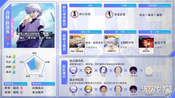 猎人启程奇犽配队推荐,援助卡修行要诀选择。在杀手世家揍敌客家的小小暗杀者。资质被家族内称为历代最好,潜力难以测量,下面小编带来的是奇犽配队以及援助卡修行要诀选择推荐,感兴趣的小伙伴一起来看看吧。