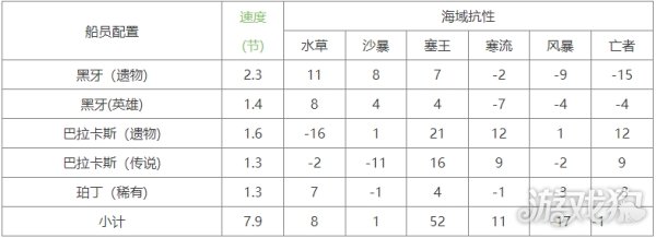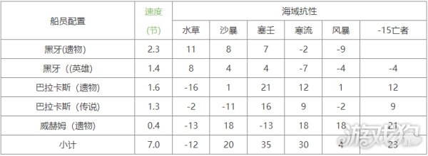 第二种搭配中,蓝色珀丁速度1.3,可以考虑装上,比第一种快0.9节速度,但是风暴和亡者抗性低,如果做航海任务还得换,省钱的话可以只收集第一种配置,具体搭配如下: