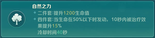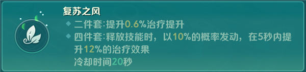 四件套:释放技能时,10%的概率提升12%的治疗效果,持续时间5秒,冷却时间20秒。