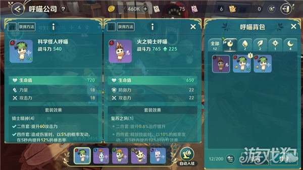呼喵是游戏中一种生物,可以将其入驻呼喵公司,从而获得一定的属性加成,不同呼喵所携带的属性不同,套装效果也不相同。