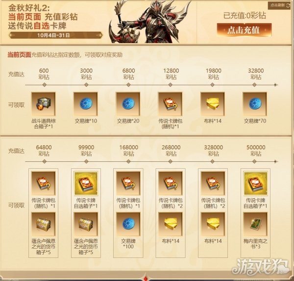 金秋好礼2:购买彩钻 送传说自选卡牌