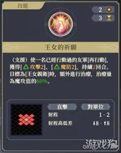 王女的祈愿,再动队友,同时进行治疗,属于T0技能,再动在战斗中可以发挥的作用巨大,可以改变的战场策略点非常多,例如可以增加输出频率,又或者输出后再动撤回站位打成白嫖战术,等等。