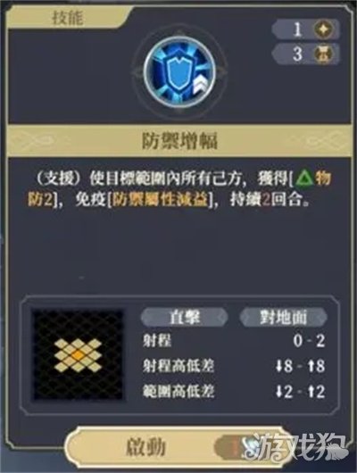 防御增幅,使范围内的友军获得物防提升,免疫防御属性减益,比较常见的buff。